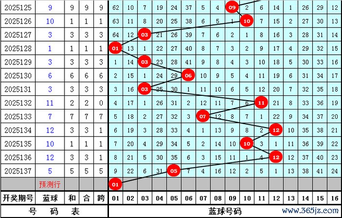 蓝球分析:上期开出蓝球号码05,号码遗漏值为1,蓝球近期以温冷号码为主,热码蓝球开出较少,本期贯注回补,热心蓝球号码01。