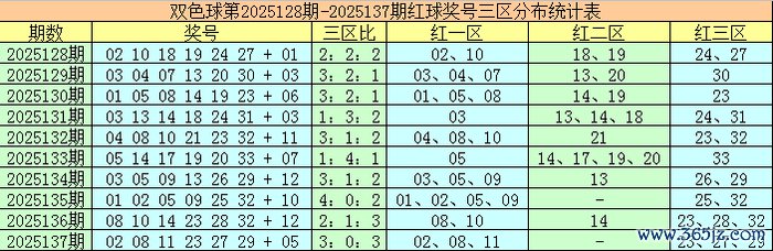 袁智囊双色球第2025138期红球三区走势分析: